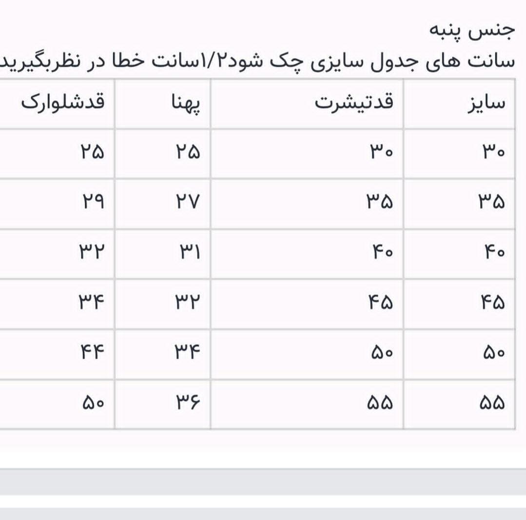 سایز ۴۵ ,سایز۳۰ ,سایز۳۵ ,سایز۴۰ ,سایز۵۰ ,سایز۵۵ |